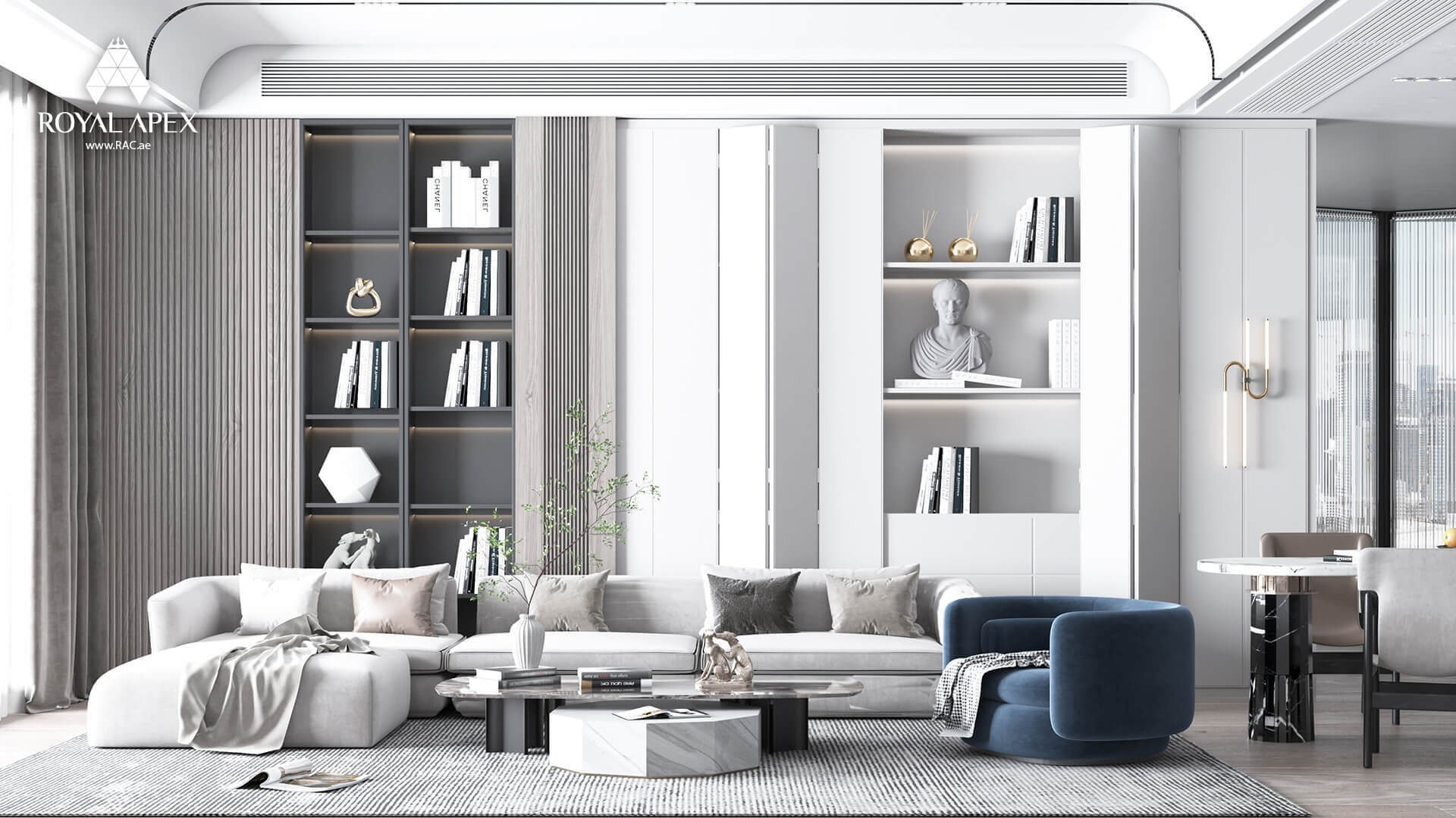 Immerse yourself in our captivating interior design portfolio that showcases our unrivaled creativity in transforming spaces. From elegant circular lounge retreats to modern office rooms and luxurious living rooms, our portfolio exemplifies our ability to create personalized and enchanting environments. Discover the harmonious fusion of functionality, aesthetics, and attention to detail in every project. Explore the complete gallery to be inspired by our innovative designs, meticulous craftsmanship, and impeccable taste. With Royal Apex's expertise in interior design, we turn ordinary spaces into extraordinary expressions of style and comfort. Let our portfolio ignite your imagination and unlock the potential of your own space.